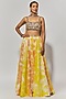 Featuring a multi-colored lehenga in georgette base with mirror hand embroidery and hand tie-dye detail. It is paired with a blouse and a dupatta. Accentuate it with ethnic dangler earrings and heels for weddings.