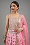 Pink Raw Silk Tie-Dyed & Mirror Work Lehenga Set