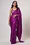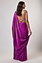 Featuring a purple saree in satin silk base. It is paired with a blouse having mirror tassels and thread hand embroidery. Accentuate it with statement earrings and heels for festive occasions or sangeet ceremonies.