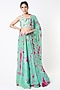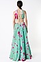 Featuring a turquoise lehenga in pure georgette base with tie-dye. It is paired with a matching blouse in georgette base having 3D cutwork floral work and a mirror scalloped embroidered dupatta.