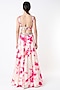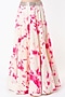 Featuring a white and pink lehenga in georgette base with handmade tie-dye and mirror work. It is paired with a matching blouse in raw silk base having mirror embroidery and a net dupatta.