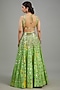 Featuring a yellow and green tie-dyed lehenga in raw silk base with mirror work. It is paired with a blouse having mirror work and a net dupatta. Accentuate with statement jewellery and heels for weddings or mehendi ceremonies.