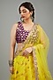 Featuring a yellow tie-dyed lehenga in raw silk base with mirror work. It is paired with a blouse having 3D floral mirror work and a net dupatta. Accentuate with statement jewellery and heels for weddings or haldi ceremonies.