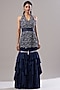 Featuring a cobalt blue kurta in net base with crystal, pipes, cutdana, beads and sequins hand embroidery. It is paired with matching satin gharara pants. Style it with statement jewellery and heels for a festive ready-look.