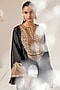 Featuring a black kalidar short kurta in dola silk base with embellishment. It is paired with salwar pants and an organza dupatta. Accentuate it with statement earrings and block heels for festive ceremonies.