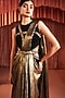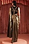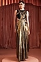 Featuring a black and gold draped saree in crepe blend and foil base with an attached drape. Accentuate it with statement earrings and heels for cocktail parties.