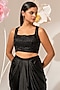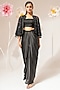 Featuring a black cape in organza base with embellishment. It is paired with a blouse and a satin skirt. Accentuate it with statement earrings and heels for a perfect festive ready-to-go look.