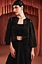 Featuring a black cape in satin base with cutwork embroidery. It is paired with a blouse and a draped skirt. Accentuate it with statement earrings and heels for a festive look, sangeet or engagement ceremony.