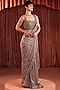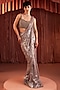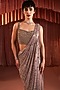 Featuring a blush rose draped saree in metallic foil georgette base. It is paired with an embroidered blouse. Accentuate with statement jewellery and heels for a wedding or sangeet ceremony.