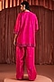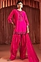 Featuring a hot pink kurta in raw silk base with handwork. It is paired with salwar pants and a dupatta. Accentuate it with statement earrings and block heels for festive ceremonies.