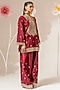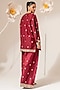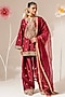 Featuring a maroon kurta in silk base with hand embellishment. It is paired with salwar pants and an organza dupatta. Accentuate it with statement earrings and block heels for festive ceremonies.