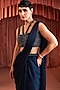 Midnight Blue Satin Draped Saree Set
