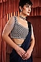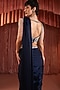 Featuring a midnight blue draped saree in satin base with an embroidered belt and a slit. It is paired with an embroidered blouse. Accentuate with statement jewellery and heels for a wedding or sangeet ceremony.