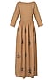 Featuring a beige maxi dress in cotton base with back tie-up detailing and embroidery.