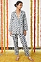 Featuring an indigo blue blazer in cotton base with printed polka dots. It is paired with matching embroidered cigarette pants.