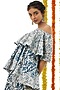 Featuring an indigo blue layered off-shoulder top in cotton base with attached bell sleeves and aari hand embroidery. It is paired with matching sharara pants.