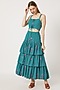 Featuring a teal blue cut-out dress in khadi cotton base with drawstring. It has printed voile lining and round neckline.