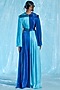 Featuring a blue dual-toned kaftan in satin base. It is paired with a matching lurex tulle belt having glass yarn hand embroidery.