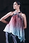 Featuring a mint and coral halter top in silk organza base with gathers and hand embroidered silk raffia straps. This contains only one piece.