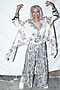 Featuring a black and white boxy top in silk base with print, tassels, and sporty ribbed detailing. It is paired with matching harem pants having sporty side stripes.