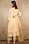 Featuring a beige kurta in georgette base. It is paired with matching crepe pants and an organza dupatta having floral motifs.