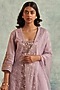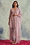Featuring a mauve short kurta in linen base with embroidery. It is paired with matching salwar pants and an organza lace dupatta.