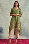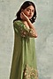 Featuring an olive green asymmetric kurta in linen base with embroidery. It is paired with contrasting off-white pants.