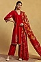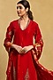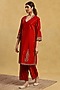 Featuring a red kurta in crepe base. It is paired with pants and a printed phulkari dupatta. Accentuate it with dangler earrings and heels for a festive look.