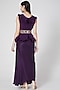 Featuring a purple peplum top in organza base. It is paired with a matching draped skirt in satin base and an embroidered belt.