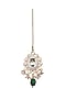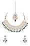 Featuring a gold finish emerald green meenakari choker necklace studded with kundan, set in brass. It is paired with a matching pair of dangler earrings and a maangtikka. This beautiful necklace set will add a touch of elegance and complete your regal look for weddings and festive occasions.