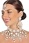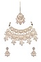 Featuring a gold finish ivory meenakari choker necklace studded with kundan, set in brass. It is paired with a matching pair of chandbali earrings and a maang tikka. Perfect for weddings, engagements, celebrations, or special occasions, this choker set adds a touch of glamour and grace to your attire, making you the centre of attention.