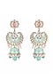 Featuring a pair of gold finish meenakari jhumka earrings studded with kundan polki including mint and white beads, set in brass. Ideal for festive occasions or wedding celebrations.