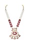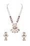 Featuring a gold finish mala studded with kundan polki, pearl beads and faux diamonds, set in brass. It is paired with a matching pair of earrings. Perfect wear for festive occasions or wedding ceremonies.