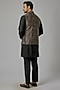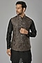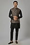 Featuring a black bundi jacket in cotton silk base with machine embroidery. It is paired with a kurta and pants. Perfect wear for a festive or sangeet ceremony.