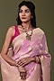 Featuring a baby pink banarasi handwoven saree in khaddi georgette base with zari floral jaal pattern. It is paired with a matching unstitched blouse.