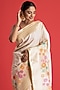 Featuring a cream banarasi saree in handloom katan silk base with woven floral meena and golden zari brocade details. It is paired with a matching unstitched blouse piece.