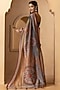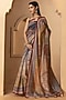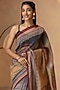 Featuring a grey and beige saree in pure linen silk base with digital print. It is paired with a matching unstitched blouse.