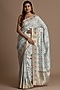Featuring a light sky blue saree in pure munga silk base with banarasi zari weave. It is paired with a contrasting unstitched blouse.