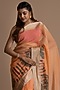 Featuring a melon orange saree in organza base with resham, zari and swarovski embroidery. It is paired with a matching unstitched blouse piece.
