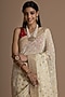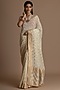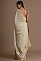 Featuring an off-white saree in pure khadi georgette base with banarasi zari weave and brocade details. It is paired with a matching unstitched blouse.