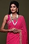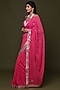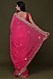 Featuring a pink saree in poly georgette base with resham, zardozi work, and gota patti motif embellishments. It is paired with a matching unstitched blouse fabric.