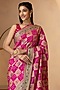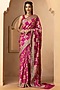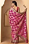 Featuring a pink handmade gharchola bandhani saree in pure gadwal silk base with banarasi zari weave. It is paired with a matching unstitched blouse piece.
