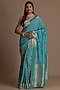 Featuring a sky blue banarasi saree in khadi georgette base with brocade and zari weave. It is paired with a matching unstitched blouse piece.