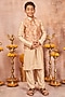 Beige Cotton Silk Kurta Set With Bundi Jacket For Boys