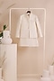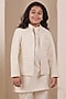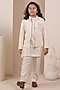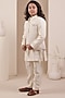 Featuring a beige striped bandhgala for boys in matka linen base with an attached pocket square. It is paired with a chanderi silk kurta and pyjama. Style it with a watch and a classic pair of mojaris and a bracelet for a wedding or sangeet functions.