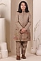 Brown Tissue Silk Floral Motif Embroidered Achkan Set For Boys
