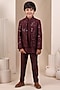 Deep Maroon Chanderi Embroidered Jodhpuri Jacket Set For Boys
