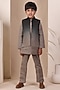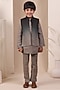 Grey & Black Soft Linen Embroidered Jacket Set For Boys
