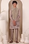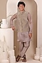 Grey Tissue Silk Sequin Work Nehru Jacket Set For Boys