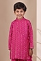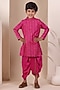 Hot Pink Cotton Silk Dhoti Set For Boys